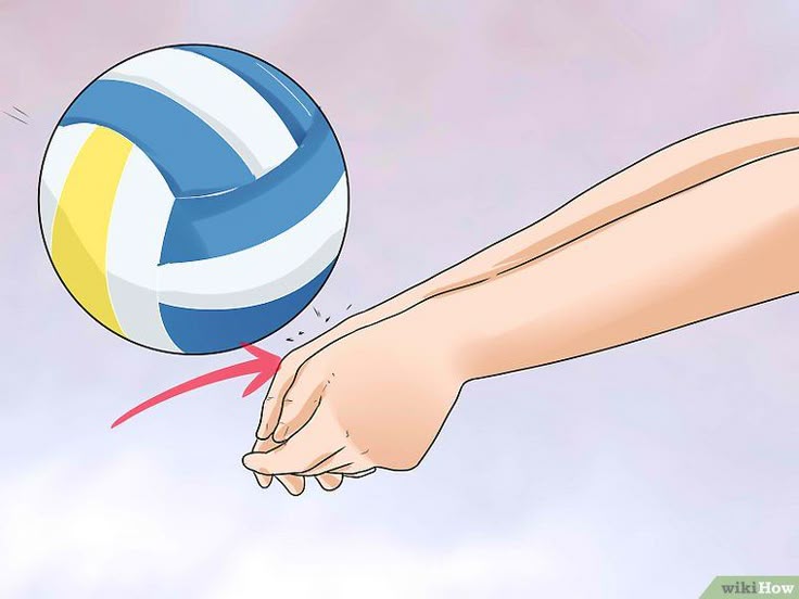 Segure a o bola com uma ou as duas mãos, jogue para cima da cabeça, bata na bola com a palma da mão.